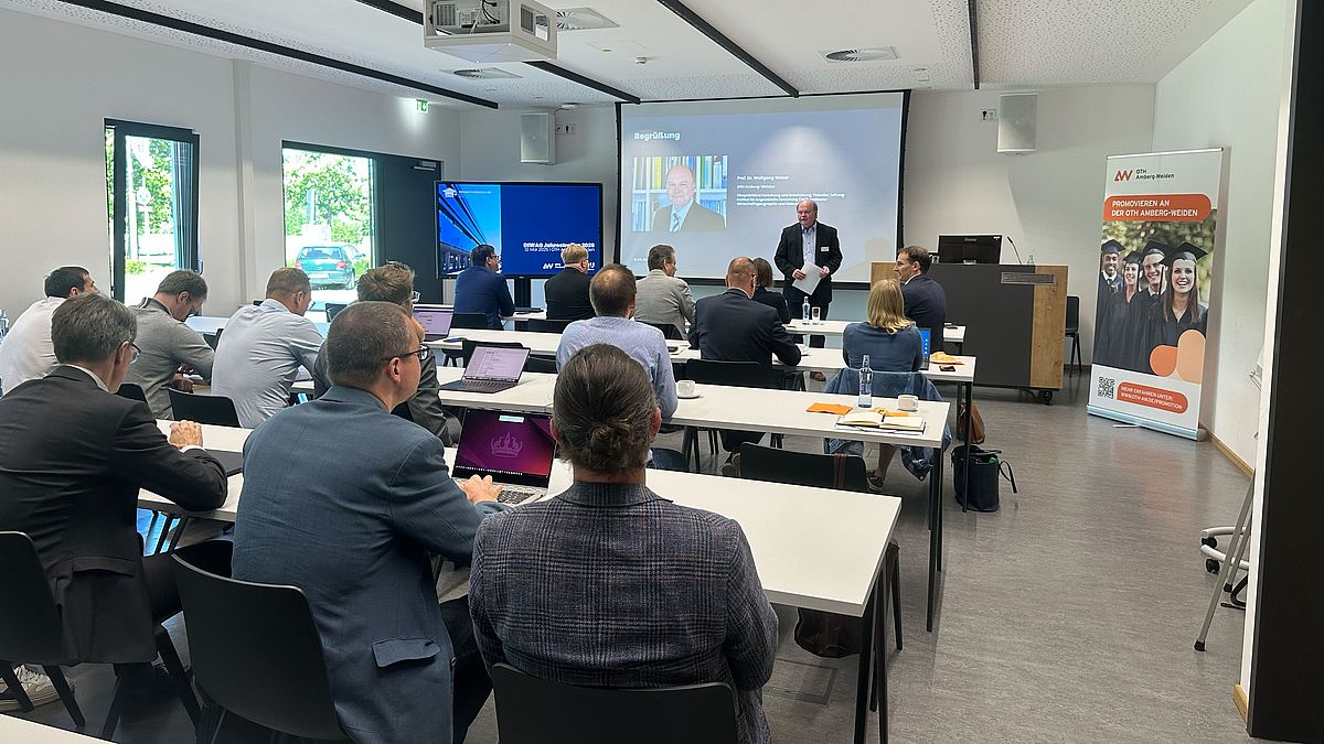 Prof. Wolfgang Weber, Vizepräsident der OTH Amberg-Weiden, betonte in seiner Eröffnungsrede die doppelte Wirkung der Digitalisierung für die Region: Sie schafft nicht nur viele spannende Forschungsthemen rund um Digitalisierung in einer sich wandelnden Gesellschaft, sondern stärkt gleichzeitig den ländlichen und vom Strukturwandel betroffenen Raum durch die Förderung von wissenschaftlichem Nachwuchs. Denn wer lokal promoviert, wird Teil der Lösung für den regionalen Fachkräftemangel – und gestaltet Zukunft aktiv mit. Eine weitere lobenswerte Facette des Promotionskollegs betonte Prof. Elmar Buchner, Vizepräsident der HNU und Leiter des Promotionszentrums DIWAG, nämlich das besondere Konstrukt der standortübergreifenden und interdisziplinären Betreuungssituation für Promovierende.