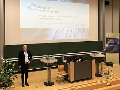 Die Bayerische Forschungsstiftung fördert Technologieprojekte in acht übergreifenden Themenfeldern. Anwendungsnahe F&E-Projekte mit Partnern aus Wissenschaft und Wirtschaft in Bayern werden mit bis zu 50 % der Projektkosten unterstützt, so Dr. Christian Haslbeck, Geschäftsführer der BFS. Ein wesentliches Ziel der Bayerischen Forschungsallianz BayFOR ist die Erschließung von europäischen und internationalen Fördermitteln. Die Angebote, die Martin Reichel, Geschäftsführer der BayFOR vorstellt, reichen von der Vermittlung von Partnern über Workshops zur Antragsformulierung bis hin zur Vor-Ort-Präsenz in Brüssel. Auch die Innoscripta GmbH hat sich die Unterstützung von Forscherinnen und Forschern zur Aufgabe gemacht mit ihrem Leitfaden: Innovationen erkennen, Projekte initiieren und Partner vernetzen. Sind schützenswerte Ergebnisse erarbeitet, kommt die Bayerische Patentallianz PayPAT ins Spiel, erläutert Dr. Bettina Baumeister, Lizenzmanagerin bei der BayPAT. Im Team aus Juristen, Natur- und Ingenieurwissenschaftler werden Erfindungsmeldungen bewertet, bis zum Patent begleitet und anschließend am Markt verwertet.