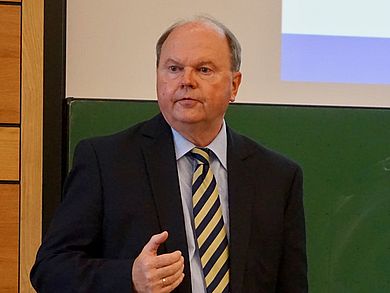 Dr. Wolfgang Weber ging in seiner Vorlesung auf die Trends der Raumordnung und -entwicklung in Deutschland, Bayern und in der Oberpfalz. In einer SWOTAM-Analyse beleuchtete er die Herausforderungen in der Nördlichen Oberpfalz und stellte ausgewählte Strategie-Ansätze vor, die mit der Wirtschaft erarbeitet worden sind.