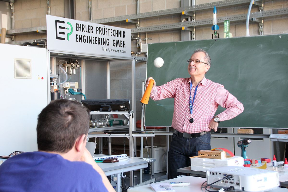 Am Nachmittag konnten die Lehrer/innen je nach Interesse und Unterrichtsfach aus vier Workshops wählen: Prof. Dr. Peter Kurzweil hatte das Thema „Elektrochemische Energiewandler“ im Fokus, Prof. Dr. Werner Prell zeigte Versuche zur Gewinnung und Charakterisierung von Pflanzenölen und deren Umesterung zu Biodiesel. Warum ein Flugzeug (stabil) fliegt, das demonstrierte Prof. Dr. Andreas Weiß anhand einfacher Experimente anschaulich und Prof. Dr. Marco Taschek ging auf die Motortechnik und die Auswirkungen der Oktanzahl verschiedener Kraftstoffe auf den Motor ein.