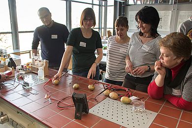 Die Versuche in den Laboren der OTH Amberg-Weiden wurden so aufgebaut, dass die Lehrer/innen diese mit relativ einfachen Mitteln auch in ihrer Schule durchführen können. Doch bevor es zu den Praktika in den Laboren ging, bekamen die Lehrer/innen eine kurze Auffrischung ihrer Grundlagen zum Thema Energie.