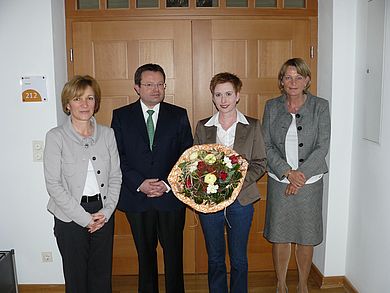 Seit Beginn des Sommersemesters 2011 gibt es eine neue Frauenbeauftragte an der HAW: Von Dipl.-Ing. (FH) M.Sc. Stefanie Reil ist der Aufgabenbereich an Prof. Dipl.-Kauffrau Christiane Hellbach übergegangen. Präsident Prof. Dr. Erich Bauer bedankte sich bei Stefanie Reil für die großartige Arbeit und wichtigen Impulse, die sie in dieser Funktion gegeben hat. Sie hat den Prozess der Auditierung angestoßen und letztendlich mit dafür gesorgt, dass die HAW seit März 2011 das Qualitätssiegel „familiengerechte hochschule“ führen darf.