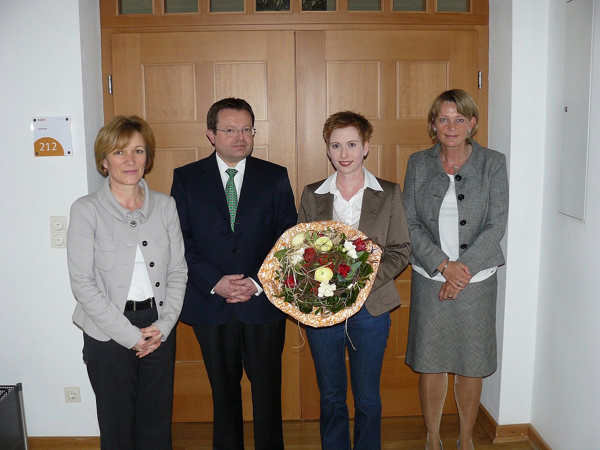 Seit Beginn des Sommersemesters 2011 gibt es eine neue Frauenbeauftragte an der HAW: Von Dipl.-Ing. (FH) M.Sc. Stefanie Reil ist der Aufgabenbereich an Prof. Dipl.-Kauffrau Christiane Hellbach übergegangen. Präsident Prof. Dr. Erich Bauer bedankte sich bei Stefanie Reil für die großartige Arbeit und wichtigen Impulse, die sie in dieser Funktion gegeben hat. Sie hat den Prozess der Auditierung angestoßen und letztendlich mit dafür gesorgt, dass die HAW seit März 2011 das Qualitätssiegel „familiengerechte hochschule“ führen darf.