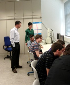 Im Rahmen der Praktikumsvorlesungen führte Prof. Dr. Coulon die Studierenden in die Potentiale der Rasterelektronenmikroskopie und der Elektronenstrahlmikrobereichsanalyse im Rahmen eines dreitägigen Praktikums ein. Neben den fachlichen Eindrücken konnten die Studierenden auch die Gelegenheit nutzen, die erworbenen englischen Sprachkenntnisse einzusetzen und internationales Flair zu schnuppern.
