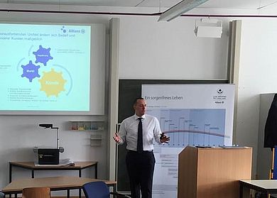 Im Mittelpunkt des Vortrags stand das Privatkundengeschäft im Filialversicherungsvertrieb. Christopher Iwanowski stellte das traditionelle Lebensphasenmodell vor und interpretierte es vor dem Hintergrund der Digitalisierung neu: Der Kunde entwickelt sich vom reinen Konsumenten zum selbstbewussten Verbraucher, der viele Informationskanäle benutzt und alle Angebote – so gut es geht – vergleicht. Die Frage ist, ob die beschafften Informationen korrekt sind und wie lange der Beschaffungsprozess für den Einzelnen dauert. Unternehmen oder Versicherer müssen darauf reagieren und den Kunden dabei unterstützen. Die Allianz verfolgt dabei eine Strategie breitgefächerter und ineinander greifender Prozesse, Vertriebskanäle und Angebote. So nutzt sie beispielsweise die existierenden Strukturen und starke Flächenpräsenz vor Ort (General- und Hauptvertreter) – und verknüpft sie mit der digitalen Welt, in der sich die Kunden immer häufiger bewegen. Diese Freiheit, zwischen digitalen und analogen Angeboten stets frei wählen zu können, erwartet ein Kunde von einer Versicherung 2.0, sie ist damit auch Grundlage einer erfolgreichen Zukunft der Allianz. In der rund drei-stündigen Vorlesung diskutierten Gastdozent und Studierende u.a. über das Image der Versicherungsbranche und die Rolle sowie die Pflichten des Marktführers Allianz. Christopher Iwanowski beantwortete die zahlreichen Fragen und betonte den enormen Aufwand der Allianz, um der Branche ein positives Imagevorbild zu sein. Der Gastvortrag wurde im Rahmen der Lehrveranstaltung „Marketing-Instrumente“ (Studiengang BWL) durchgeführt.