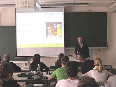 Im Rahmen der Vorlesung „Rechtsschutz für Nichttechnische Leistungen“ (Prof. Dr. Andrea Klug) gab Frau Rechtsanwältin und Fachanwältin für Gewerblichen Rechtsschutz Alexandra Dellmeier-Beschorner (Kanzlei LexDellmeier, München) mit einem Gastvortrag zum Thema „Elvis: ein Mensch - eine Legende - eine Marke“ Einblicke in die vielfältigen Anwendungsbereiche des Marken-, Design- und Urheberrechts.