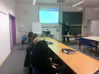 Dr. Schulz, Abteilungsleiter Asset Allocation bei der RISKLAB GmbH München, referierte auf Einladung von Prof. Dr. Thorsten Hock (Fakultät Betriebswirtschaft) über moderne Methoden der Portfoliooptimierung. Der Referent sensibilisierte die Studierenden des Schwerpunktes Finanz- und Versicherungsmärkte für die praktischen Probleme der traditionellen Portfoliotheorie.