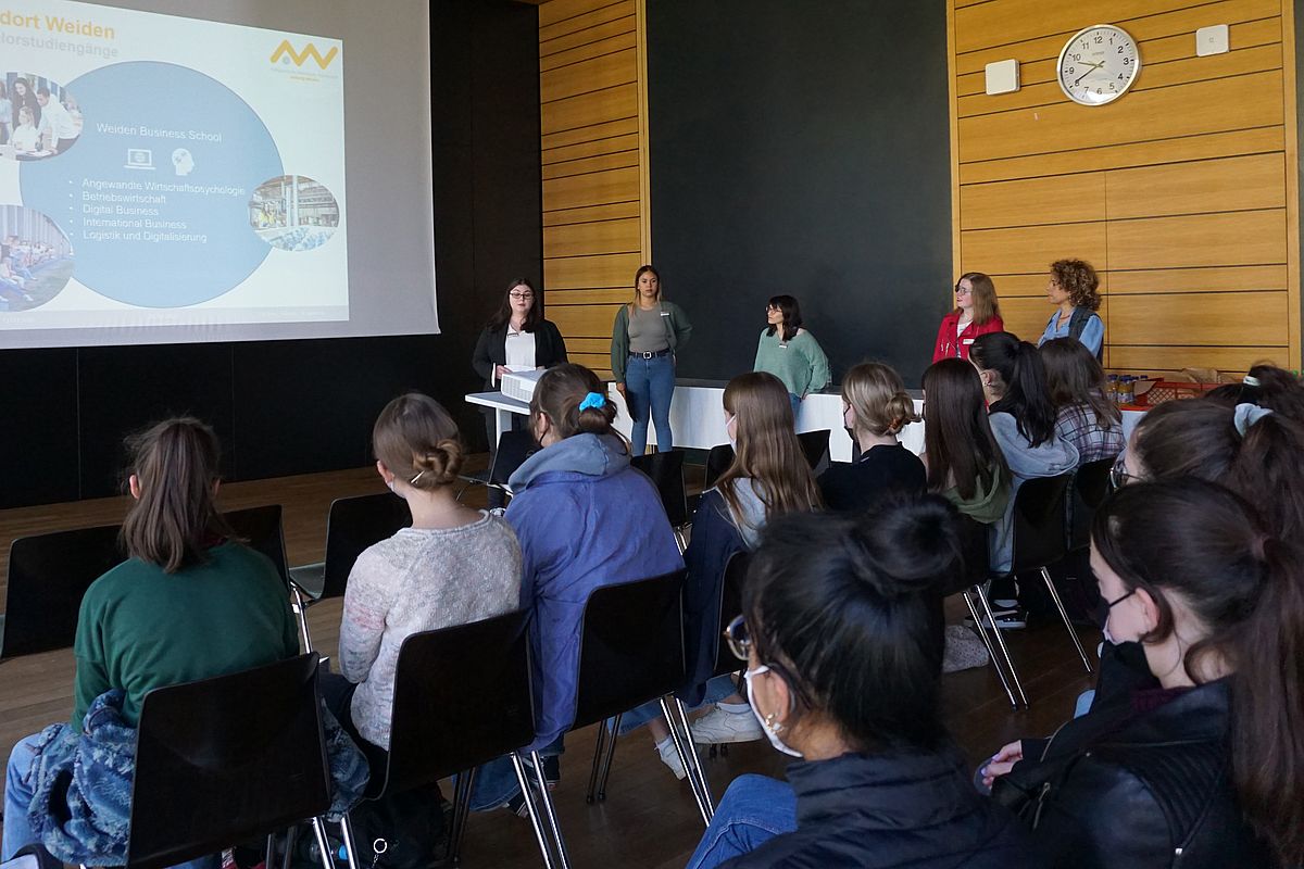 Die Schülerinnen sollten zum Beispiel herausfinden, wie man in der Bibliothek Bücher ausleiht und wie die Bücher in der Bibliothek geordnet sind, wo sich das Studienbüro befindet und welche Aufgaben es hat, wie man in der Mensa Essen bezahlt und wo sich verschiedene Dekanate befinden. In Weiden durften die Schülerinnen außerdem im WTC-Gebäude einen kurzen Blick in den OP-Saal werfen und erfuhren, wie die Luftabfuhr in OP-Sälen funktioniert.