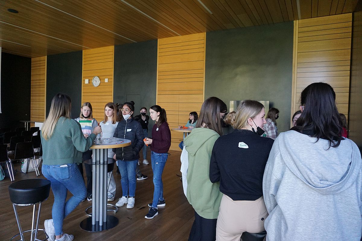 Nach der Präsentation konnten sich die Schülerinnen bei einem lockeren Erfahrungsaustausch persönlich mit Studentinnen aus allen Fakultäten unterhalten. So sammelten die Schülerinnen Informationen aus erster Hand, hörten Erfahrungsberichte der Studentinnen und können so besser einschätzen, welche Studiengänge zu ihren eigenen Interessen und Stärken passen.
