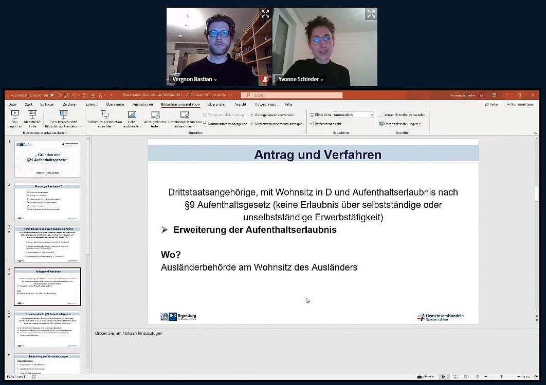 Bei diesem von der Gründungsförderung um den Oberpfalz Start-up (O/HUB) organisierten Online-Vortrag ging es um die Möglichkeiten von Nicht-EU-BürgerInnen, vor allem Studierender der OTH Amberg-Weiden, ein Unternehmen vor Ort zu gründen.