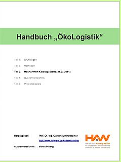 Bereits im Sommersemester 2010 wurde als Wahlpflichtfach der Vertiefungsrichtung „Integrierte Logistiksysteme“ in der Fakultät Wirtschaftsingenieurwesen eine studentische Projektarbeit zum Thema initiiert. Auf Basis struktureller Vorgaben und unter konzeptioneller Begleitung von Prof. Dr.-Ing. Günter Kummetsteiner erfolgten erste Recherchen und Ausarbeitungen. Aufbauend darauf wurden im Rahmen eines Forschungs- bzw. Praxissemesters von Prof. Dr. Kummetsteiner die Recherchen durch weitere Quellen erweitert, vorhandene Ansätze überarbeitet und vertieft sowie weitere Themen integriert, so dass als Ergebnis ein mehrteiliges „Handbuch ÖkoLogistik“ vorliegt.