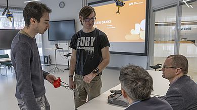 Die Bandbreite der präsentierten Erfindungen war beeindruckend und reichte von leistungsstarken Quadcoptern, die bis zu 2 kg transportieren können, über smarte Sensor-Handschuhe mit Gestenerkennung bis hin zur LiveGuard-Smartwatch, die Gefahrensituationen erkennt.