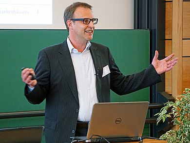 Von der Intensivstation zum Krankenhaus der Zukunft: Henning Lensch stellte in seinem Vortrag „Healing Architecture“ innovative Konzepte und Beispiele für das Design von Einrichtungen im Gesundheitswesen vor. Dabei konnte er aus dem Nähkästchen plaudern. Denn sein Unternehmen RRP International Singapore hat sich auf Planung und Bau von Gesundheitseinrichtungen spezialisiert. Gemeinsam mit seinem Team entwirft er Klinikgebäude mit heller, offener Architektur, farbenfrohen Fassaden und freundlichen Zimmern – eher Patientenhotels als Krankenhäuser. Diese Projekte sind anspruchsvoll und komplex, denn neben patientenorientierter Architektur müssen gerade bei Gesundheitsbauten auch Energieeffizienz, Betriebskosten oder Nutzerfreundlichkeit stimmen.