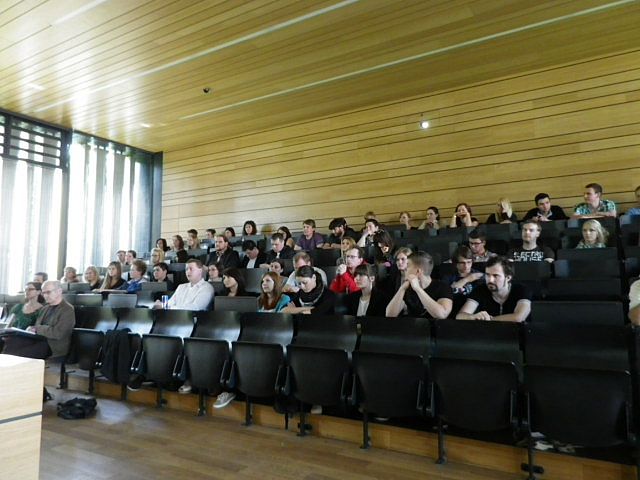 Für das östliche Europa gibt es besonders viele Fördermöglichkeiten für ein Auslandsstudium und –praktikum, über die die Studierenden zu Beginn der Veranstaltung von Christian Erkenbrecher (Leitung IO) und Marian Mure (geschäftsführende Leitung ZSMOE) informiert wurden. Anschließend berichteten Studierende der Hochschule aus erster Hand: Patrick Santy, Student der Medienproduktion, erzählte begeistert von seinem Sommersprachkursstipendium in Bratislawa, das seinen Horizont erweitert habe und das er allen Teilnehmern enthusiastisch empfahl. Martina Gajda und Karl Schierlinger berichteten ebenso überzeugend von ihrem Praktikum bei ŠKODA AUTO in Mladá Boleslav. Die Frage, ob sie sich vorstellen könnte, in Tschechien auf Dauer zu arbeiten, bejahte Martina Gajda ohne langes Zögern. Der Student Alexander Nasarow hingegen hatte noch keine Arbeitserfahrung bei dem Konzern GAZPROM gesammelt, über dessen Rolle als Sportsponsor er referierte. Vielmehr als bei GAZPROM würde ihn eine spätere Tätigkeit bei einem regionalen Energieunternehmen reizen. Für baldige Berufseinsteiger wie Martina Gajda, Karl Schierlinger und Alexander Nasarow bietet Karin Hartung, EURES-Beraterin der Agentur für Arbeit, eine kompetente Anlaufstelle. EURES – the European Employability Services – unterstützt die grenzüberschreitende Arbeitssuche und erfreut sich einer engen Kooperation der Pilsener und Weid<s>e</s>ner Vertretungen. Für die Zukunft ist eine verstärkte Akquise von Praktikumsplätzen geplant.