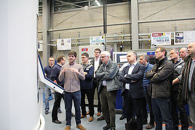 Nach den Vorträgen bot sich den Besuchern die Möglichkeit, bei verschiedenen Laborbesichtigungen mehr zum praktischen Einsatz von 3D-Druck oder weiteren Themen aus dem Bereich Industrie 4.0 zu erfahren. Neben der Vermittlung von Information wurde auch ein Diskussionsforum zwischen industriellen Anwendern, Anbietern und Experten der Hochschule geboten.