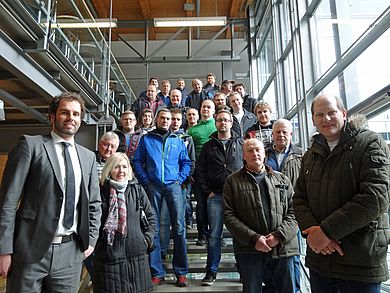 Michael Hebauer, wissenschaftlicher Mitarbeiter der Fakultät Maschinenbau/Umwelttechnik, begrüßte die Gäste. Nach einem kurzen Vortrag ging’s in die Labore, wo die HandwerkerInnen einen Einblick in aktuelle Forschungsprojekte gewinnen konnten.