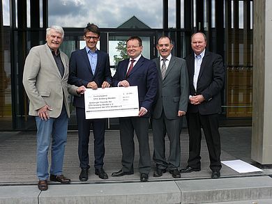 Die beiden Fördervereine der OTH Amberg-Weiden – Amberger Freunde der OTH Amberg-Weiden e. V. und Förderverein der OTH Weiden e. V. – haben unter Vorsitz von Prof. Dr. Erich Voss (Amberg) und Bankvorstand Rudolf Winter (Weiden) beschlossen, das Institut für Ethik und Nachhaltigkeit mit jeweils 15.000 Euro, damit in Summe von 30.000 Euro, zu unterstützen. Die Fördervereins-Vorsitzenden überreichten diese Spende am 22. Mai 2015 an Präsident Prof. Dr. Erich Bauer und Institutsleiter Dr. Bernhard Bleyer. Das Institut für Ethik und Nachhaltigkeit koordiniert unter Leitung von Dr. Bernhard Bleyer die hochschulweiten Tätigkeiten zum Themenbereich Angewandte Ethik und Nachhaltigkeit.