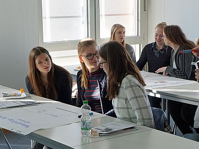 Nach dem Vortrag setzten die Schülerinnen und Schüler das neu erworbene Marketingwissen sofort um: In Gruppen erarbeiteten sie Aufgaben zur „internationalen Preispolitik“ oder zu „nationalen Unterschieden bei der Gestaltung der Werbemittel“.