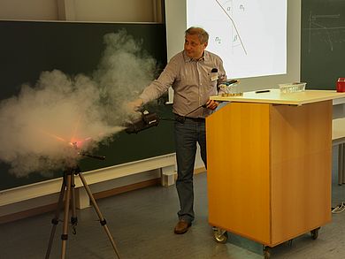 Woher kommt der Regenbogen und warum ist er bunt? Die Experimentalvorlesung „Wunder des Lichts“ erklärt die physikalischen Zusammenhänge des Naturschauspiels nicht nur anschaulich, sondern auch kindgerecht. Denn die Studierenden, die vor Diplom-Physiker Manfred Bauer sitzen, sind SchülerInnen im Alter von sechs bis 13 Jahren. Sie sind zur KinderUni an die OTH Amberg-Weiden in Weiden gekommen, um Hochschule live zu erleben. Die KinderUni ist ein Angebot im Rahmen der „Jungen Hochschule“ der OTH Amberg-Weiden, um berufstätige Eltern am unterrichtsfreien Buß- und Bettag zu entlasten.