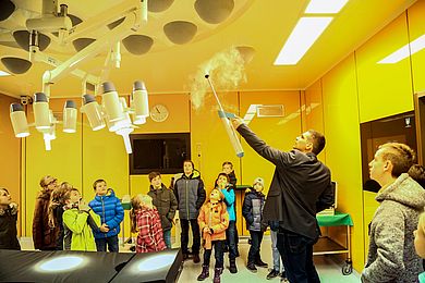Eine technische Hochschule hat mehr als nur Hörsäle: Dr. Sebastian Buhl führte die vielleicht künftigen Studierenden durch die Labore der Fakultät Wirtschaftsingenieurwesen. „Ahhs“ und Ohhs entlockte vor allem der voll ausgestattete Operationssaal der Medizintechnik. Obowhl die OTH Amberg-Weiden eine technische Hochschule ist, gibt es auch nicht-technische Studienangebote. Prof. Dr. Julia Heigl führte die Kinder mit ihrer Vorlesung „Eiskalte Geschäfte“ in die Grundlagen der Betriebswirtschaft ein. Themen wie Kalkulation oder Marktforschung wurden am Beispiel des Eisdielengründers Emil nachvollziehbar erklärt.