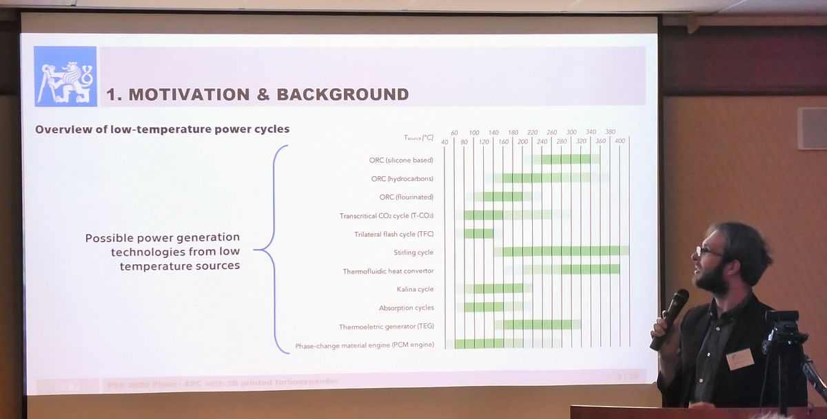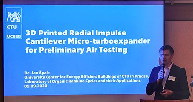 Die Kollegen vom Univercity Center for Energy Efficient Buildings (UCEEB) von der Technischen Universität in Prag berichteten in der selben Session über ihre Entwicklung von 3D-gedruckten Kunststoffturbinen, die sie im Rahmen eines gemeinsam mit Prof. Dr. Weiß durchgeführten BTHA-Projektes (Bayerisch-Tschechische Hochschulagentur) im Prüfstand für Druckluftantriebe und –technik (PDLT) an der OTH Amberg-Weiden testeten.
