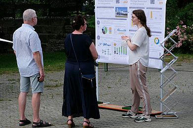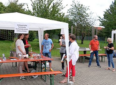 Um alle Bürgerinnen und Bürger umfassend zu informieren, fand am 25.07.2021 ein Infomarkt zur Windenergie statt. Auch die OTH Amberg-Weiden war mit Regina Trötsch, M.Eng., und Laura Weber, M.Eng., vom Kompetenzzentrum für Kraft-Wärme-Kopplung mit einem Infostand vertreten, bei dem die CO2-Bilanz und die Energiewende mit dem unbedingten Ausbau der Windenergie im Fokus stand. Auch wurde mit einem Power-to-Gas-Modell die Bedeutung der Windkraft für die dezentrale Energieversorgung und die Sektorkopplung einprägend erläutert.