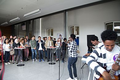 Bei der Premiere des Films wurde aber nicht nur der Film gezeigt: Austausch mit Protagonisten und Filmteam beim mit Stehempfang, Live-Musik aus Irak und Eritrea und ein orientalischer Imbiss machten den Abend zu einem interkulturellen Erlebnis. Weitere Informationen über das Projekt finden Sie hier.