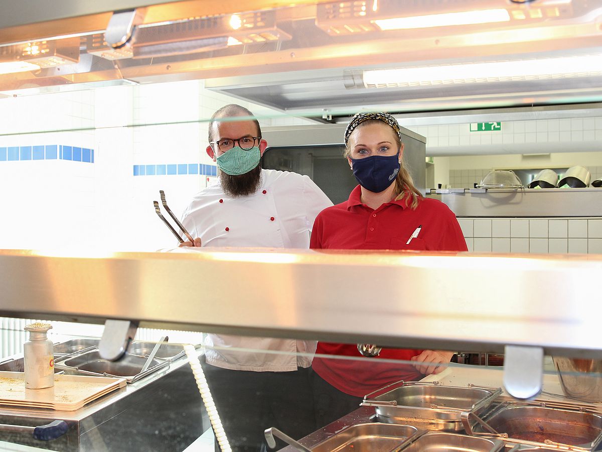 Sieben Monate war die Mensa geschlossen, doch nun ist sie wieder da – mit einem kleinen, aber feinem Angebot. Auf die Pastabar und die Salattheke muss noch verzichtet werden, aber es werden täglich zwei Hauptgerichte, davon ein Vegetarisches, und eine Nachspeise angeboten.