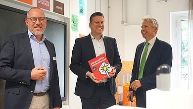 Die Hochschulleitung sowie die Dekane informierten über die Themenfelder der Hochschule, wie beispielsweise die Forschungs- und Gründungsaktivitäten, aktuelle Entwicklungen in Studium und Lehre oder bezüglich der Internationalisierung der Hochschule. Auch Vertreter*innen des studentischen Konvents standen für ein Gespräch zur Verfügung.