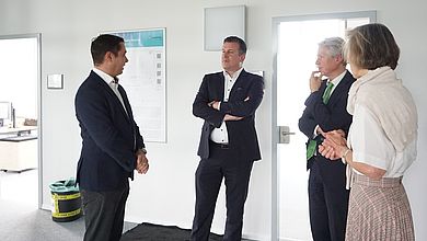 Bei einem Rundgang über den Campus hatte der Besuch aus München Gelegenheit, sich selbst ein Bild von der Hochschule zu machen und z. B. einen Blick in den Lehr- und Forschungs-OP sowie weitere Labore zu werfen und den neuen Modulbau von innen zu sehen. Außerdem stellte der wissenschaftliche Leiter Prof. Dr. rer. nat. Daniel Loebenberger das Lernlabor Cybersicherheit vor.