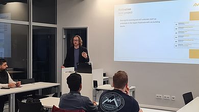 Christian Wolf hatte für die Teilnehmenden vor allem zwei Ratschläge: Erstens „Networking, da man nie weiß, wer in der Zukunft helfen kann“. Zum Beispiel ist einer seiner ehemaligen Chefs inzwischen Kunde in mehreren Projekten der HOHPE GmbH. Zweitens „die Testmöglichkeiten an der Hochschule nutzen“. Er selbst kooperierte zum Beispiel mit einem Studierendenprojekt aus Amberg um seine zweite Gründung Healthbeat voranzutreiben.