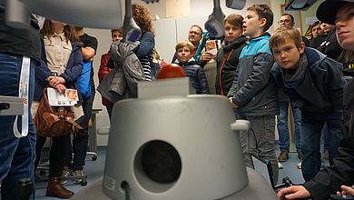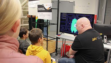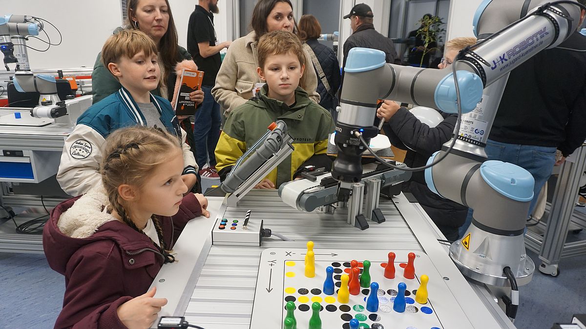 In Amberg konnten die Besucher eine meterhohe Tesla-Spule bestaunen, die Musik erzeugte, sowie Experimente zur Strömungsmechanik, Lasertechnik, Chemie und KI erleben. Interaktive Workshops und Mitmach-Aktionen wie die Welt mit VR erkunden, im MakerSpace bunt blinkende LED-Buttons basteln oder Tic-Tac-Toe mit Robotik und KI einmal anders spielen, begeisterten Besucher aller Altersgruppen. Besonders spektakulär war sicherlich die Kinder-Uni, die für einen überfüllten Hörsaal sorgte. Mit viel Schall, Rauch und einer Portion Humor wurden chemische Verbindungen erklärt.