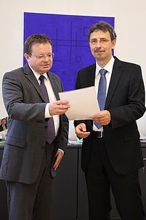 An der HAW wird ab dem Wintersemester 2013/2014 Prof. Dr. Olaf Bleibaum die Fakultät Maschinenbau/Umwelttechnik mit dem Lehrgebiet „Technische Strömungsmechanik“ verstärken. Präsident Prof. Dr. Erich Bauer überreichte dem neuen Kollegen am 26. Juni 2013 die Ernennungsurkunde. Prof. Dr. Bleibaum studierte Physik an der Universität Leipzig und promovierte an der Otto-von-Guericke-Universität Magdeburg.