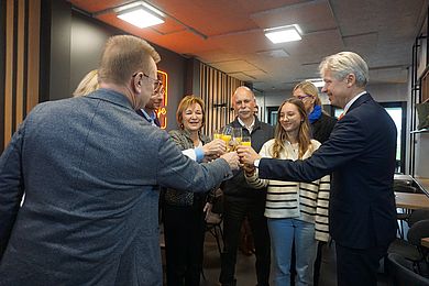 Der Impuls für das Café kam von Landtagsabgeordneten Dr. Stephan Oetzinger und Vizepräsident Prof. Dr. Wolfgang Weber. Sie waren sich bei einem gemeinsamen Kaffeetrinken einig: Ein Studierendenhaus, wie es andere Hochschulen haben, fehle an der OTH Amberg-Weiden, werde aber gebraucht. Oetzinger mobilisierte daraufhin Geld aus der so genannten Fraktionsinitiative der CSU im Bayerischen Landtag. Ein Jahr später öffnet die Orange Lounge nun ihre Türen. Oetzinger, Hellbach, Weber, die beteiligten Studierenden und auch Hochschulpräsident Prof. Dr. Clemens Bulitta sind mit dem Ergebnis mehr als zufrieden.