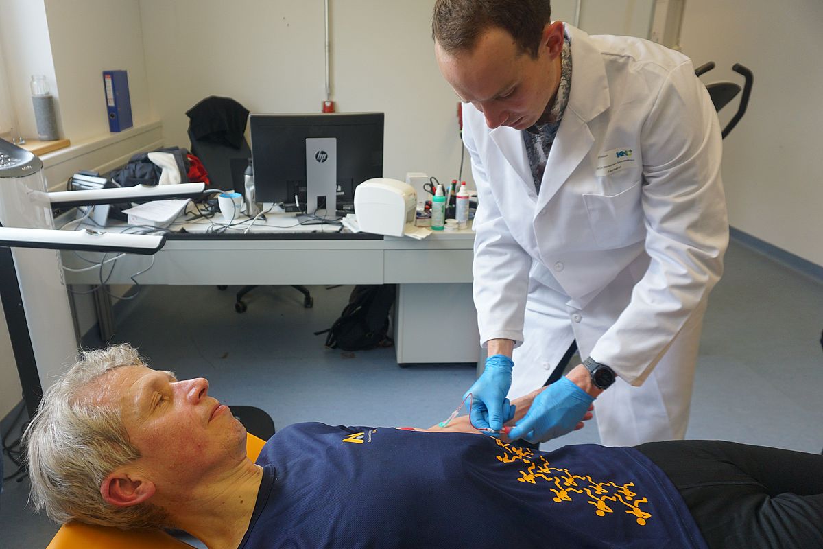 Weitere Bestandteile der Leistungsdiagnostik sind eine Körperanalyse auf einer medizinischen Waage, die Aufschluss über den Fett-, Muskel-, und Wassergehalt des Körpers gibt. Außerdem messen die Forscherinnen und Forscher die Kraft in den Beinen, werten ein Ruhe-EKG aus und entnehmen eine Blutprobe zur genaueren Analyse.