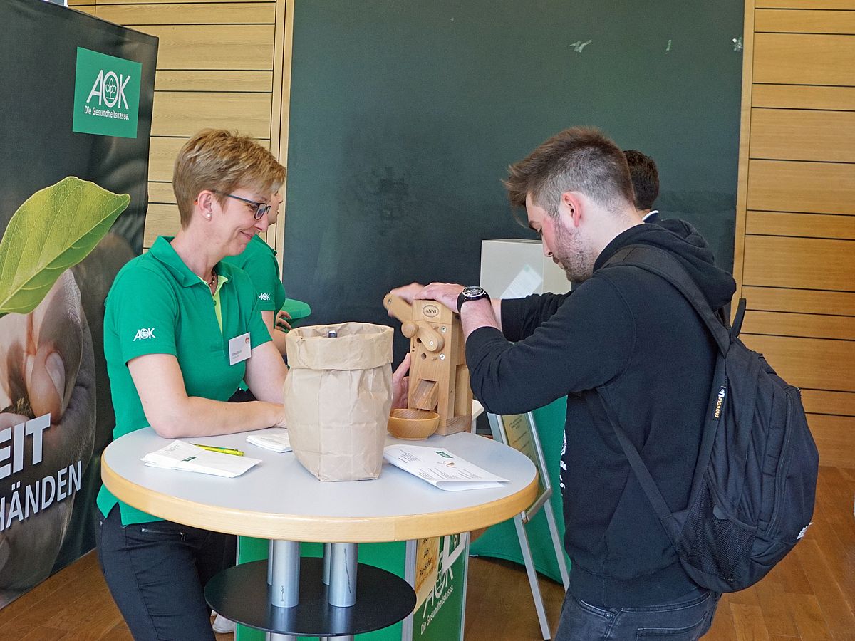 Beim 4. Aktionstag von OTHealthy drehte sich alles um Ernährung und Darmgesundheit. Die Gäste erfuhren an den Ständen im Neuen Hörsaalgebäude jede Menge über Ballaststoffe, Vitamine und Co. Dabei galt: Wissen ist gut, erleben ist besser. Die Besucherinnen und Besucher konnten Gemüse-Sticks probieren, sich im Obst-Quiz versuchen, das Körperfett messen lassen oder mit einer Mühle aus Hafer Flocken machen. Zwei Food-Trucks auf dem Campus sorgten für eine gesunde Mittagspause oder einen leichten Nachtmittags-Snack. Auf der Speisekarte standen vegetarische Burger, Gemüse-Linguine, Smoothies oder Frozen Joghurts.