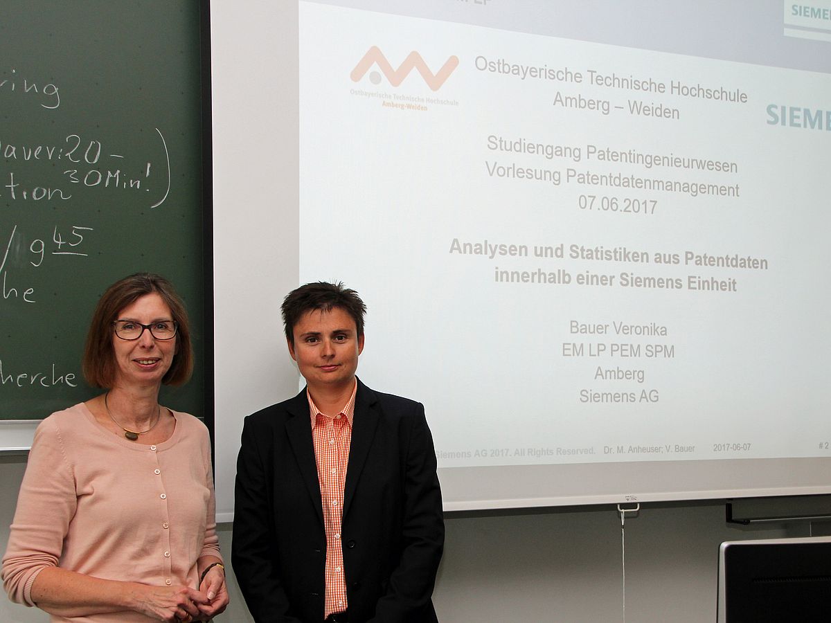 Veronika Bauer besuchte die OTH Amberg-Weiden auf Einladung von Professor Dr. Ursula Versch, Praxisbeauftragte PI, im Rahmen der Vorlesung Patentdatenmanagement.
