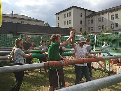 Abgesehen vom Deutschkurs hatten die TeilnehmerInnen zusätzliche Tutorien, Bewerbungschecks, Präsentationstraining und extra curriculare Angebote, wie den Ausflug mit internationalen Studierenden zum Hochseilgarten oder die Teilnahme beim menschlichen Kickerturnier.