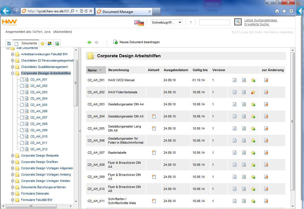In diesem Zusammenhang wurden die einzelnen Arbeitsschritte der am Workflow Beteiligten (z. B. Antragsteller, QM, Ersteller, Prüfer, Freigeber, etc.) im Rahmen eines Dokumentenneu- bzw. Änderungsantrags vorgestellt und im Detail besprochen. Gleichzeitig konnten einige systemtechnische Fragen geklärt werden und spezielle Hinweise zur Gestaltung von Formularen und Vorlagen nach dem Corporate Design gegeben werden.