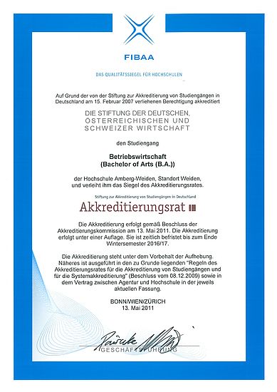 01.06.2011 Weiden Business School , Qualitätsmanagement Fakultät Betriebswirtschaft: Akkreditierungen Beitrag lesen ›
