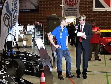 Bei der Ausstellung gab es ein schönes Wiedersehen mit dem RS05, dem ersten Rennwagen, der die Werkstatt des Rennteams verließ und nun im Besitz des damaligen technischen Leiters ist. Tivadar Menyhardt tritt mit dem mittlerweile stark modifizierten Formula-Student-Wagen sehr erfolgreich bei Slalom- und Bergrennen an. So bekam er auch in diesem Jahr den Pokal für die deutsche Meisterschaft im Slalom überreicht.