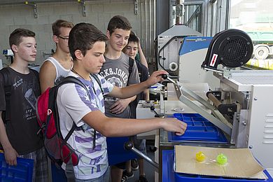 Die KMK-Realschule ist eine Kooperationsschule der OTH Amberg-Weiden. Neben einem intensiven Informationsaustausch beider Einrichtungen stehen deshalb Labor- und Praxistage für interessierte Schülerinnen und Schüler regelmäßig auf dem Programm. „Auf diese Weise erleben die Realschüler was es heißt, im Bereich Technik zu forschen und zu arbeiten. Dadurch motivieren wir die jungen Menschen, sich weiterhin mit den MINT-Fächern zu beschäftigen und später vielleicht auch ein Studium bei uns zu beginnen“, so Prof. Werner Prell, der als Kooperationsprofessor die KMK-Realschule betreut. Die Schüler führten verschiedene lehrplanbezogene Experimente zu den Themen Energieübertragung und -nutzung wie z.B. Bestimmung von Wärmekapazitäten, Wasserdampfdruck oder Gasverflüssigung mittels Kompression durch. Die Betreuung erfolgte dabei nicht nur durch Mitarbeiter und Studierende der OTH, sondern vor allem durch Schülerinnen und Schüler des Beruflichen Schulzentrums Schwandorf. Diese hatten sich für die Anleitung der Schüler bei der Durchführung und der anschließenden Auswertung der Experimente extra vorbereitet. Auch die FOS/BOS Schwandorf zählt zu den Kooperationsschulen, die Prof. Prell betreut. „Auf diese Weise haben wir einen doppelten Gewinn für die beiden Schulen. Die Schüler der FOS/BOS erleben sich als Wissensvermittler, die Schüler der KMK-Realschule führen Experimente selbst durch und tauschen sich mit den älteren Schülern aus“, so Prof. Prell. Eine Vorführung im Kunststofflabor, ein Vortrag über die Hochschule, eine Schnitzeljagd über den Campus und das Essen in der Mensa rundeten das Programm des Labortages ab. Hier erfahren Sie mehr über unsere Schulkooperationen.