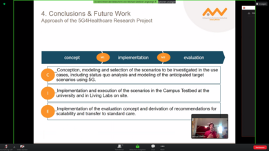 Im Rahmen des Special Track „Cloud Cyber Security and Privacy: Readiness for the Next Decade“ machte Michael Gleißner, Forschungsmaster-Student und Mitarbeiter im von Prof. Dr. Clemens Bulitta und Prof. Dr. Steffen Hamm geleiteten Forschungsprojekt 5G4Healthcare, den Auftakt. Er zeigte im ersten Vortrag des Special Track auf, welche aktuellen Schwierigkeiten im Zusammenhang von Medical-IoT-Geräten und Apps mit Anbindung an Cloud-Diensten in Bezug auf Informationssicherheit und Datenschutz bestehen. Ziel von 5G4Healthcare ist die Untersuchung, wie 5G-Mobilfunk zur Verbesserung der ländlichen Gesundheitsversorgung sowohl in der integrierten Versorgung als auch in der häuslichen Pflege eingesetzt werden kann.