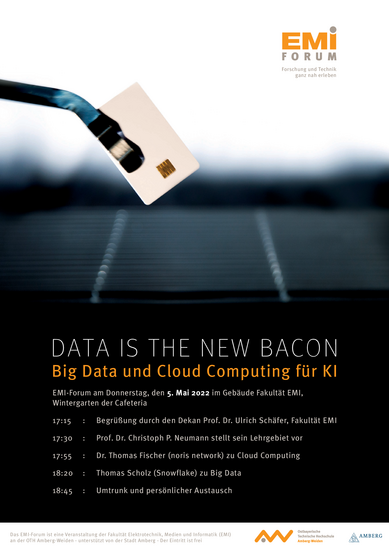 28.04.2022 Pressemeldungen , Veranstaltungen EMI-Forum: Data is the new bacon – Big Data und Cloud Computing für KI Beitrag lesen ›