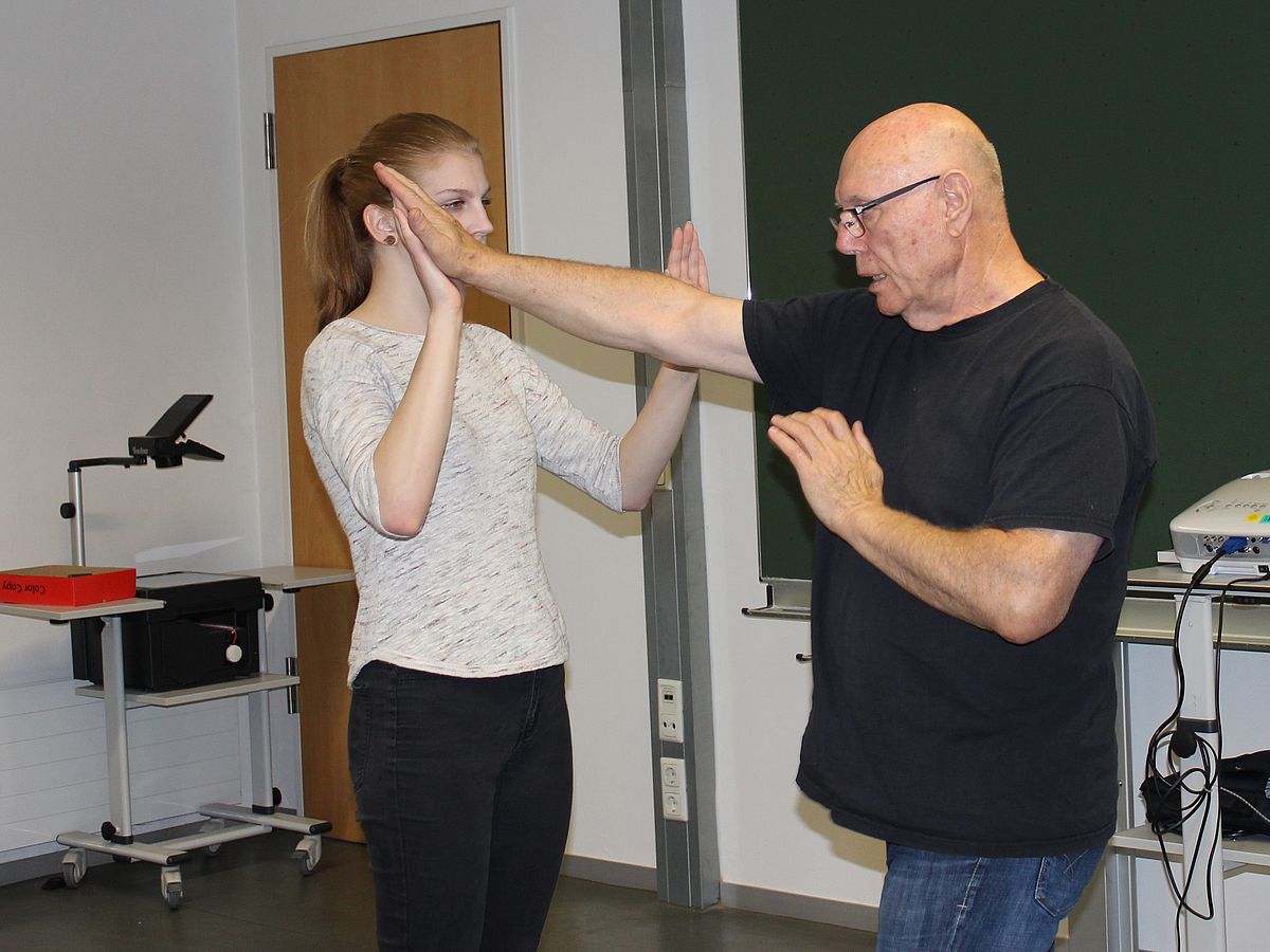 Klaus Inderst von der Kampfkunstschule Amberg führte die Teilnehmerinnen in richtiges Konfliktverhalten und Selbstverteidigungstechniken ein. Er zeigte den Frauen, wie sie sich nicht nur körperlich, sondern auch mental gegen einen möglichen Angreifer zur Wehr setzen können. Die Teilnehmerinnen lernen Risikosituationen schnell zu erkennen und dementsprechend zu handeln. So kann selbst im Ernstfall eine Chance bestehen, sich als Frau gegen einen körperlich überlegenen Gegner zur Wehr zu setzen.