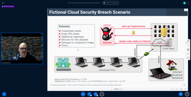 In seinem Vortrag „The COVID-19 Pandemic And Its Influence On Cloud Cyber Security“ stellte Prof. Dr. Aßmuth dar, wie die Corona-Pandemie das Nutzungsverhalten von Cloud-Diensten verändert und welche Auswirkungen dies auf die Sicherheit der Systeme hat. Auf Basis von während der Pandemie bekannt gewordener Sicherheitsvorfälle, wie beispielsweise Datenpannen, sieht Prof. Dr. Aßmuth die wesentlichen Herausforderungen in der Komplexität moderner Cloud-Ökosysteme und unklaren Zuständigkeiten in Bezug auf die Informationssicherheit, wenn mehrere verschiedene Parteien an der Bereitstellung von Cloud-Diensten beteiligt sind.
