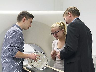 Der Schwerpunkt „Medizinische Physik“ ist an der Schnittstelle zwischen Naturwissenschaft und Heilkunde angesiedelt. Fachkräfte mit entsprechenden Kenntnissen sind in Gesundheitseinrichtungen oder in der Forschung sehr gefragt. Denn viele medizinische Großgeräte in der Strahlentherapie oder Lasermedizin benötigen das interdisziplinäre Know-how aus Physik und Medizin, um sie optimal betreiben zu können. Die Vertiefungsrichtung „Application & Service“ orientiert sich am Schwerpunkt „Medizinische Physik“ mit einem besonderen Akzent auf den Bereich Service. Denn die Nachfrage nach Serviceingenieurinnen und -ingenieuren sowie Applikations-Spezialistinnen und -spezialisten wächst zunehmend: Absolventinnen und Absolventen können dann zum Beispiel für nationale und internationale Medizintechnik-Unternehmen arbeiten – sie unterstützen Kundinnen und Kunden beim Aufbau, der Einrichtung oder Wartung der Geräte. „Medizinische Produktentwicklung und Regulatory Affairs“ spricht für sich. Wer diesen Schwerpunkt wählt, kann im Berufsleben die Zulassung von Medizinprodukten betreuen. Auch ein Bereich, in dem Fachkräfte gesucht sind.