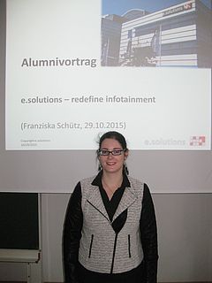 Beide schlossen ihr Studium im Jahr 2013 an der OTH Amberg-Weiden erfolgreich ab. Franziska Schütz arbeitet seit 2014 bei dem Autozulieferer e.solutions in Ulm, ein Joint Venture der Firmen Audi und Elektrobit mit rund 500 Mitarbeitern. Die Firma e.solutions entwickelt komplexe Infotainment-Geräte für Audi und die anderen Marken des VW-Konzerns. Benjamin Berger ist seit 2014 bei der Bertrandt Ingenieurbüro GmbH mit weltweit 12.000 Mitarbeitern am Standort Ingolstadt beschäftigt. Bertrand ist ebenfalls für die Autoindustrie in den Bereichen digitales Medienmanagement, Virtual Reality und 3D-Visualisierung tätig.