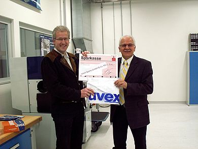 Am 31.01.2012 überreichte das Unternehmen Uvex im Technologiezentrum Cham eine Spende an Prof. Dr. Wolfgang Blöchl (Fakultät Maschinenbau / Umwelttechnik) in Form von umfangreicher Sicherheitsbekleidung. Begleitend zur Ingenieurausbildung stellt die anwendungsnahe Forschung am TC Cham für Uvex einen erheblichen Mehrwert dar, so Dr. Emile Yaacoub vom Unternehmen.