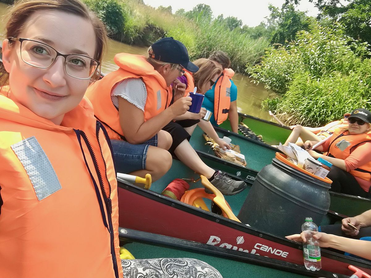 Teamarbeit war auch notwendig bei dem Übersetzen des Bootes an einem Wehr. Bei einem kurzen Stopp auf dem Wasser konnte die Gruppe in Ruhe das mitgebrachte Essen genießen und die zahlreichen Schmetterlinge und Libellen in den verschiedensten Farben beobachten. Die Einkehr im Biergarten war an dem sonnigen Tag ein gelungener Abschluss des diesjährigen Mentoringprogramms.
